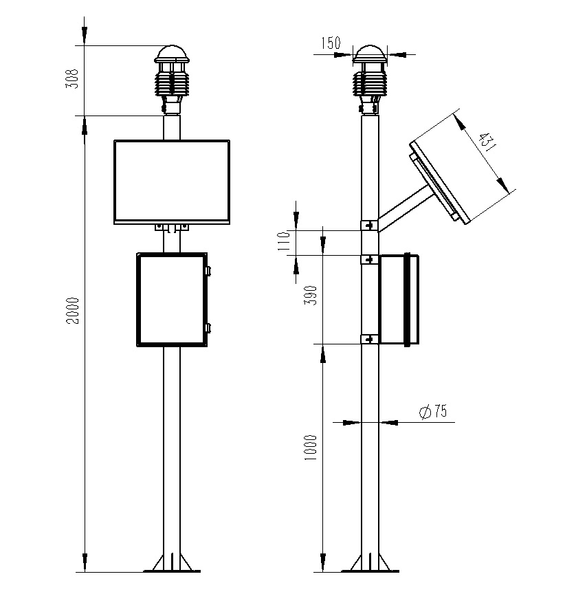 5.两米碳钢支架,顶部无需法兰盘可直接套接传感器