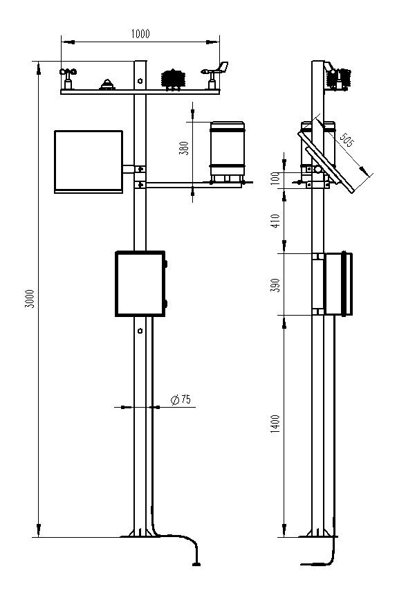 由气象传感器、气象数据采集仪、电源系统、防护箱和气象观测支架、通讯模块等部分构成。能够用于对风速、风向、雨量、空气温度、空气湿度、光照强度、土壤温度、土壤湿度、蒸发量、大气压力等十几个气象要素进行全天候现场监测。可以通过专业配套的数据采集仪与软件平台进行连接,将数据传输到软件平台数据库中,用于统计分析和处理,广泛应用于工农业生产、旅游、科研、气象等城市环境监测。